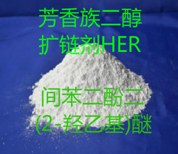 HER,間苯二酚二(2-羥乙基)醚是一種對稱的芳香族二醇擴鏈劑,它與MDI有著良好的配伍性。廣泛應用于混煉型、澆注型、熱塑型的PU彈性體制品。這種材料已經被證實能夠較大限度地維持彈性體的持久性、彈性和可塑性,并把收縮性限制到較小,沒有污染。同時,該材料除具有芳香族擴鏈的優點外,還避免了HQEE在稍微降溫情況下迅速結晶現象的不足,提供了更好的可塑性、撕裂強度、初始強度、邵氏硬度、壓縮變形、斷裂變形以及低收縮性、抗切割、柔韌性好、防滲透性、熔點低